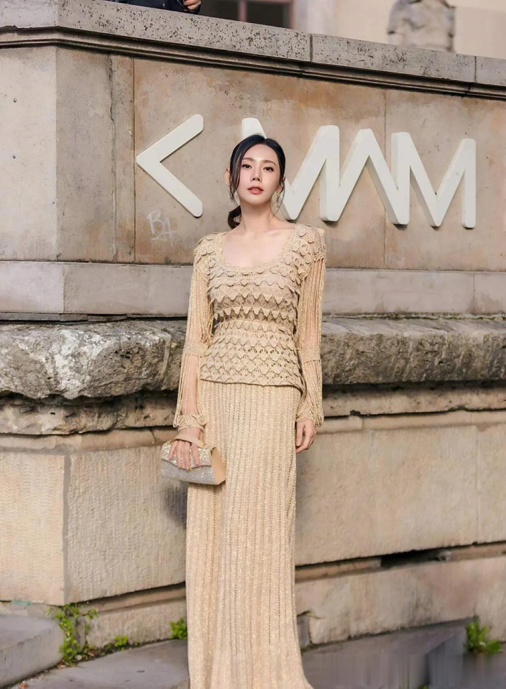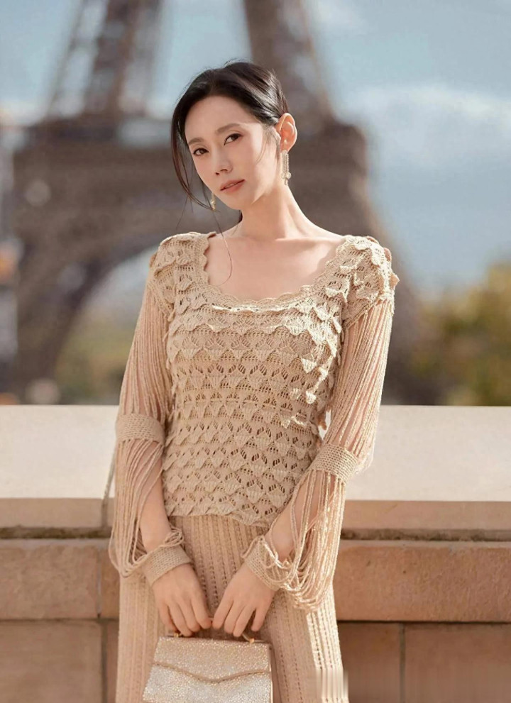 秋瓷炫科技美后大回春! 穿卡其色针织衫+半身裙, 温柔又高级!