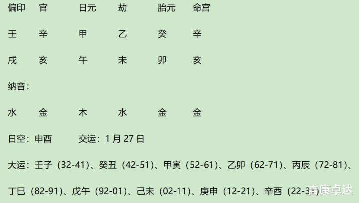此为癸丑运、庚寅年、小限癸未,甲申月;