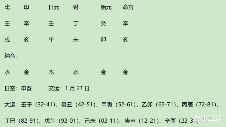 人们说水主智,也主理科,用神壬偏印、癸印得令,地支得2亥,2辛金生、2纳音水助,水过强。
