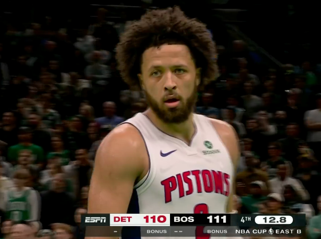 最后17.9秒坎宁安致命失误,怀特关键两罚全中,绿军采取犯规战术,9.1秒坎宁安两罚全中,安芬尼-西蒙斯两罚全中,绿军继续犯规,但坎宁安做出投篮动作,裁判回放后改判三分犯规,坎宁安三罚两中,错失绝平机会,最终活塞在客场惜败绿军,13连胜被终结。
