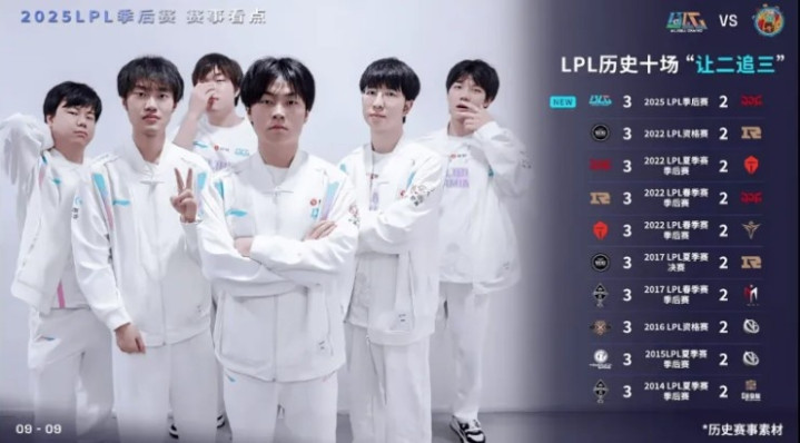 1.LPL历史仅出现过十场让二追三比赛分别是: