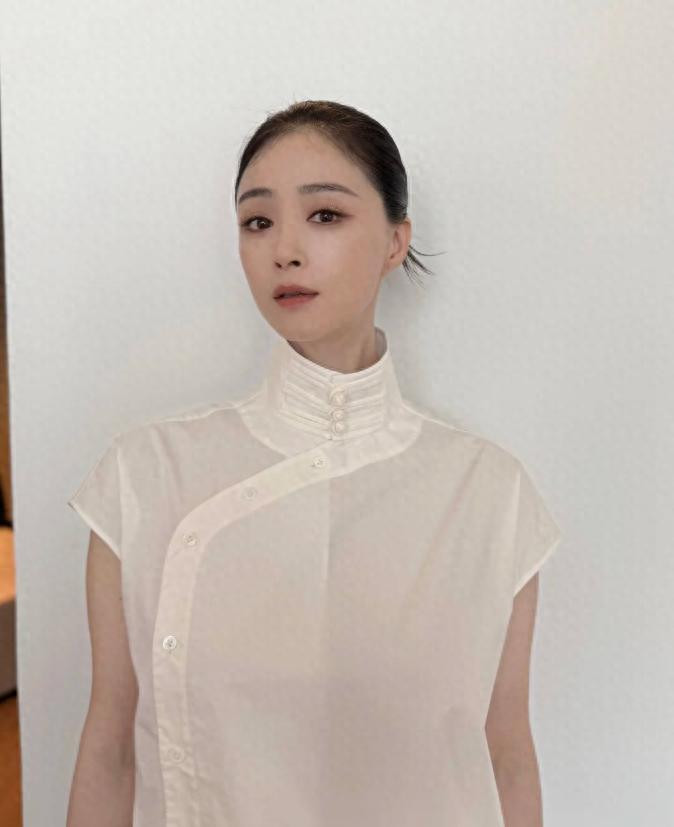 扎着低马尾,即便是大背头的造型,脸蛋仍旧紧致还小巧。