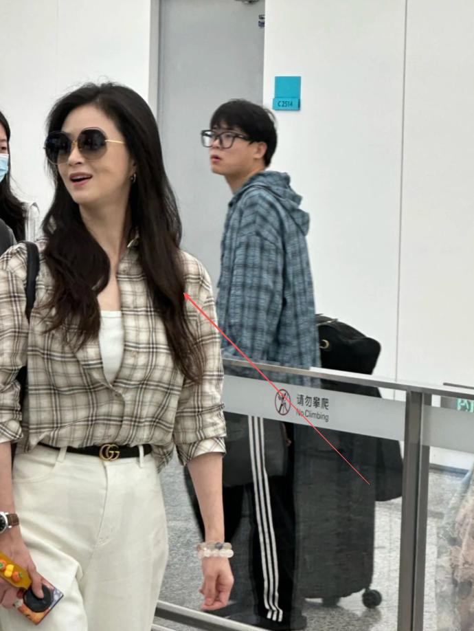 连穿着宽松的格子衬衣都没显得“壮硕”,戴着古驰的腰带,看起来妥妥的“真千金”。